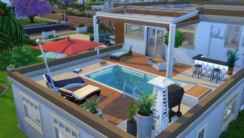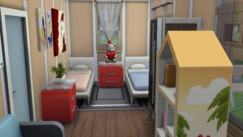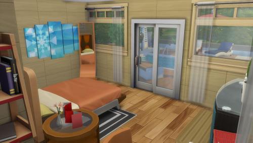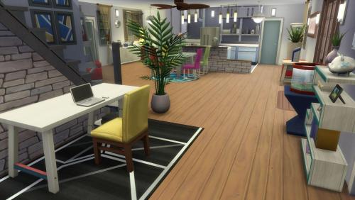 Note: Cette création a été réalisée à l'aide du code « bb.moveobjects on ». Pour s'assurer que tous les objets seront bien présents, il est préférable de l'activer avant d'installer le lot. Il est également indispensable d'ouvrir la galerie directement depuis le terrain sur lequel on compte installer la maison, plutôt que depuis « Gérer les mondes ».