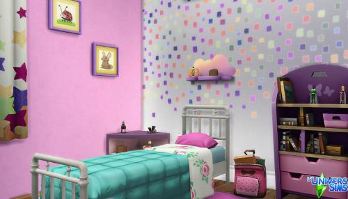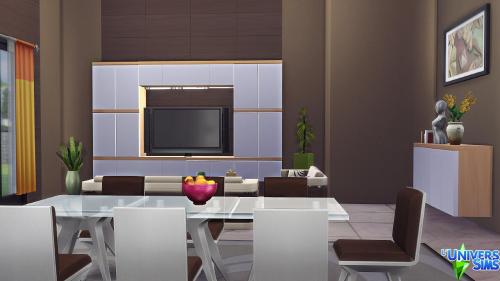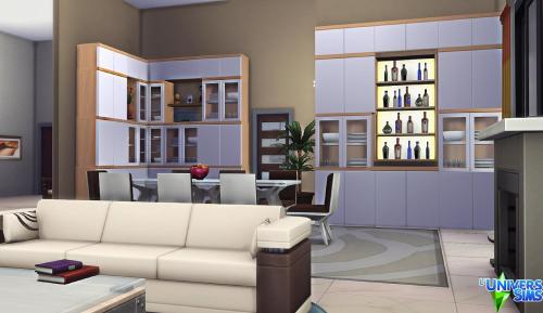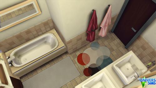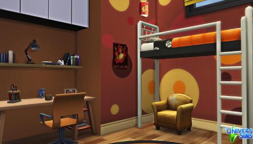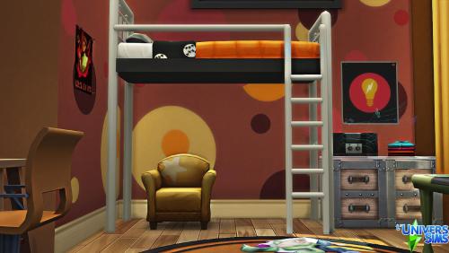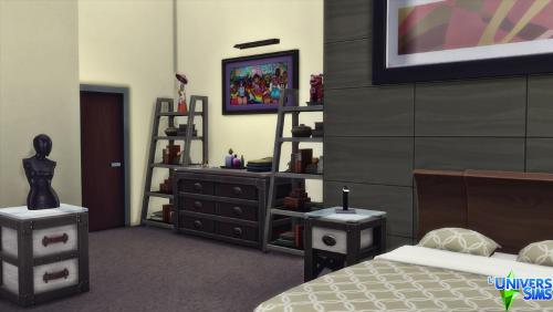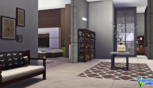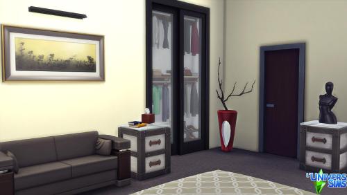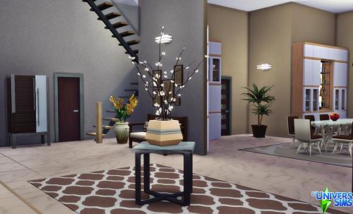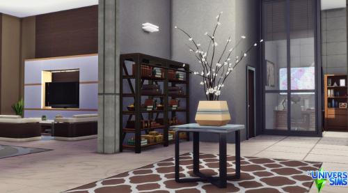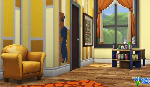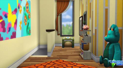 Note: Cette création a été réalisée à l'aide du code « bb.moveobjects on ».  Pour s'assurer que tous les objets seront bien présents, il est préférable de l'activer avant d'installer le lot.  Il est également indispensable d'ouvrir la galerie directement depuis le terrain sur lequel on compte installer la maison, plutôt que depuis « Gérer les mondes ».