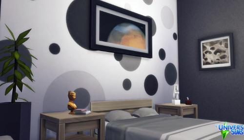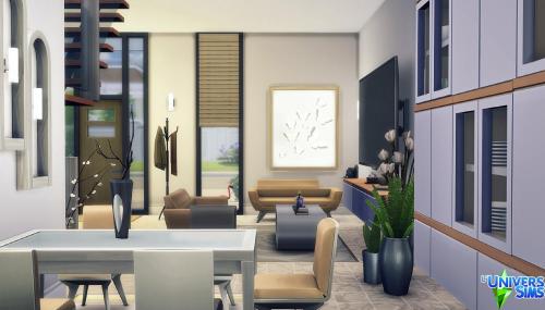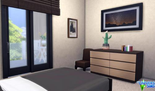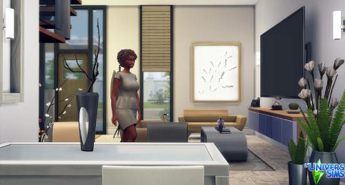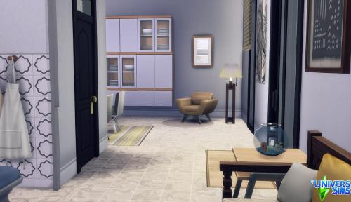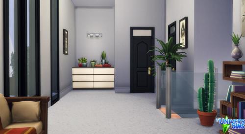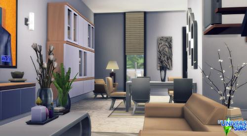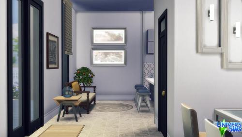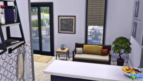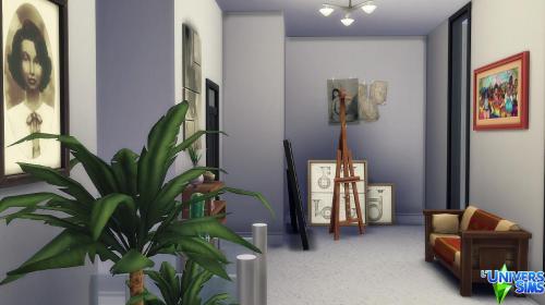 Note: Cette création a été réalisée à l'aide du code « bb.moveobjects on ».  Pour s'assurer que tous les objets seront bien présents, il est préférable de l'activer avant d'installer le lot.  Il est également indispensable d'ouvrir la galerie directement depuis le terrain sur lequel on compte installer la maison, plutôt que depuis « Gérer les mondes ».