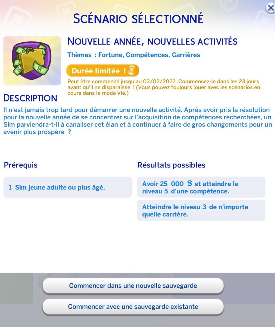 Enfin, l'équipe des Sims nous a concocté un nouveau scénario à durée limité. Ce scénario commence dès que vous l'aurez activé et disparaitra le 2 février 2022.