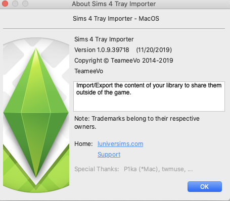 Or you can simply download the mac port, despite it's a bit outdated, this one won't require a virtual machine but still require Mono for Mac. You can find it here: Sims 4 Tray Importer for Mac - Applications - LuniverSims