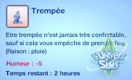 Les sims n'aiment pas être mouillés ; cela leur donne un état d'esprit négatif :