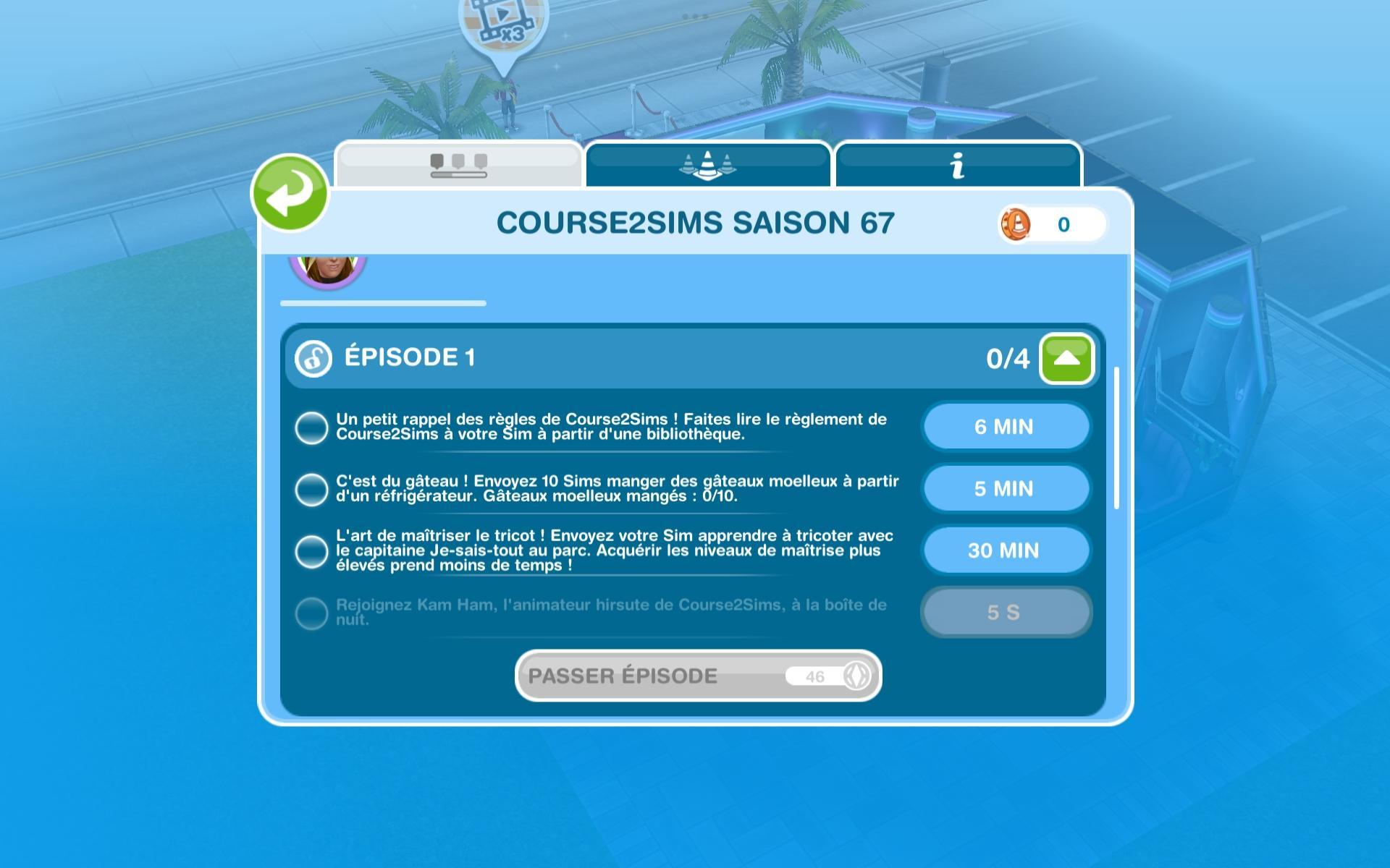Bonjour, j'ai eu que ça à faire pour le 1er jour de la réédition de la Course2sims 67 ?! Elle sera vite bouclée si c'est comme ça tous les jours- 4 réponses